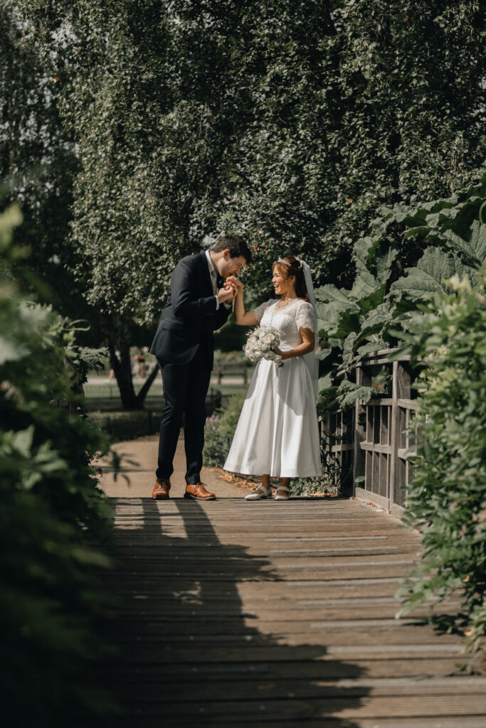 After the ceremony, the couple explored London’s character-filled streets and Regents Park for their portrait session. From classic architecture to soft afternoon light, every frame showcased why a Marylebone Town Hall wedding remains one of the most captivating styles in the city. These portraits perfectly balanced romance and fun with the unmistakable energy of London.